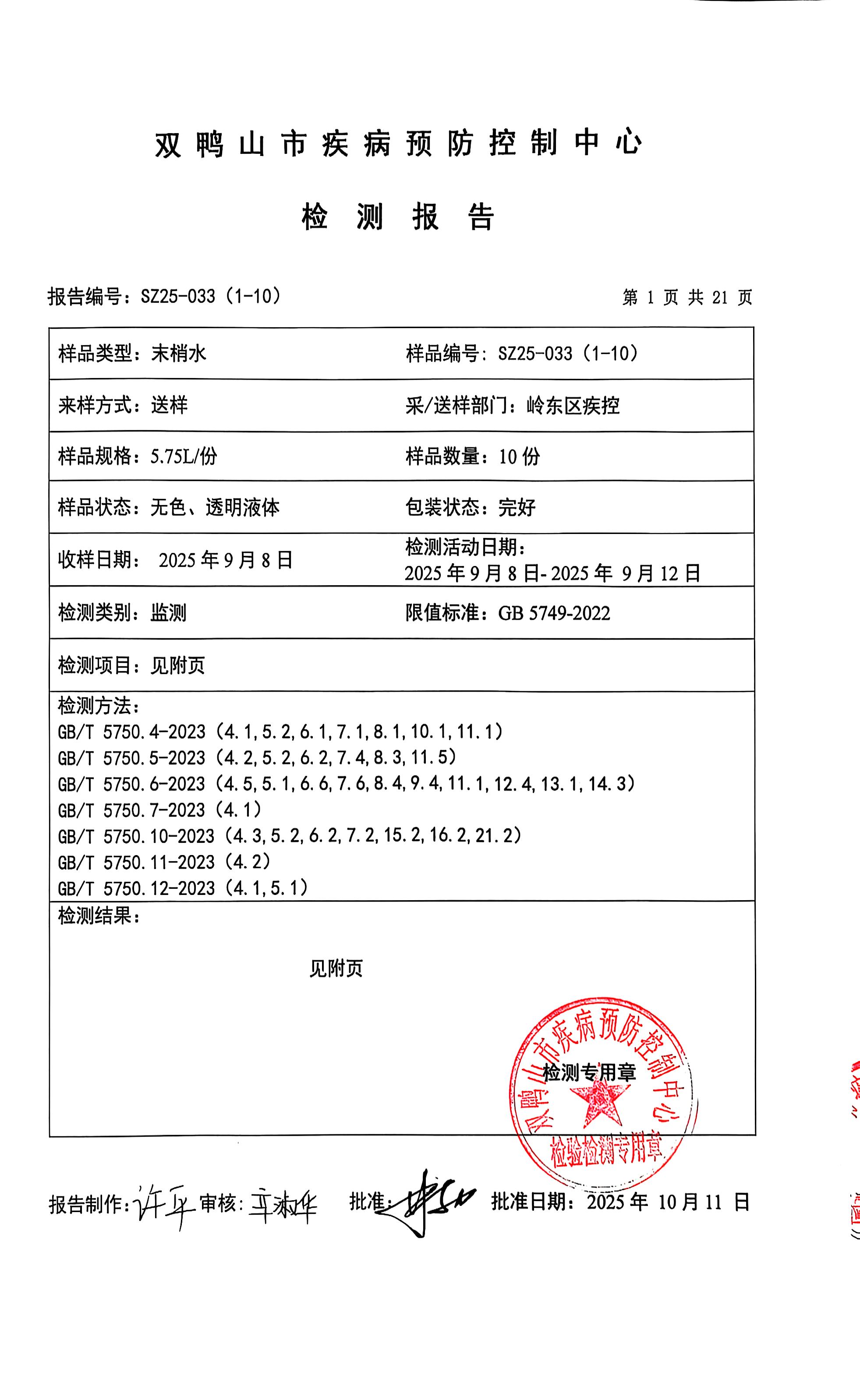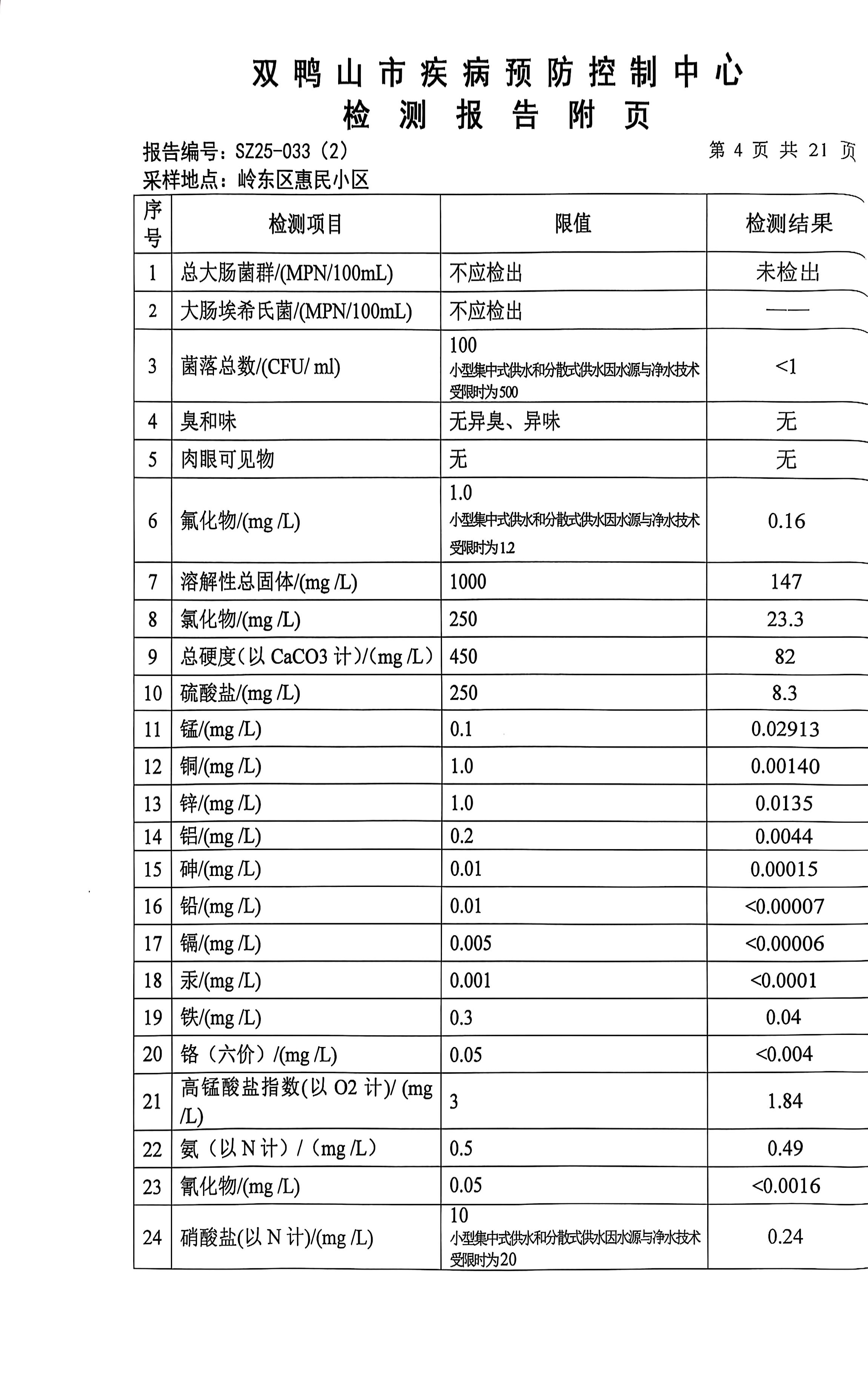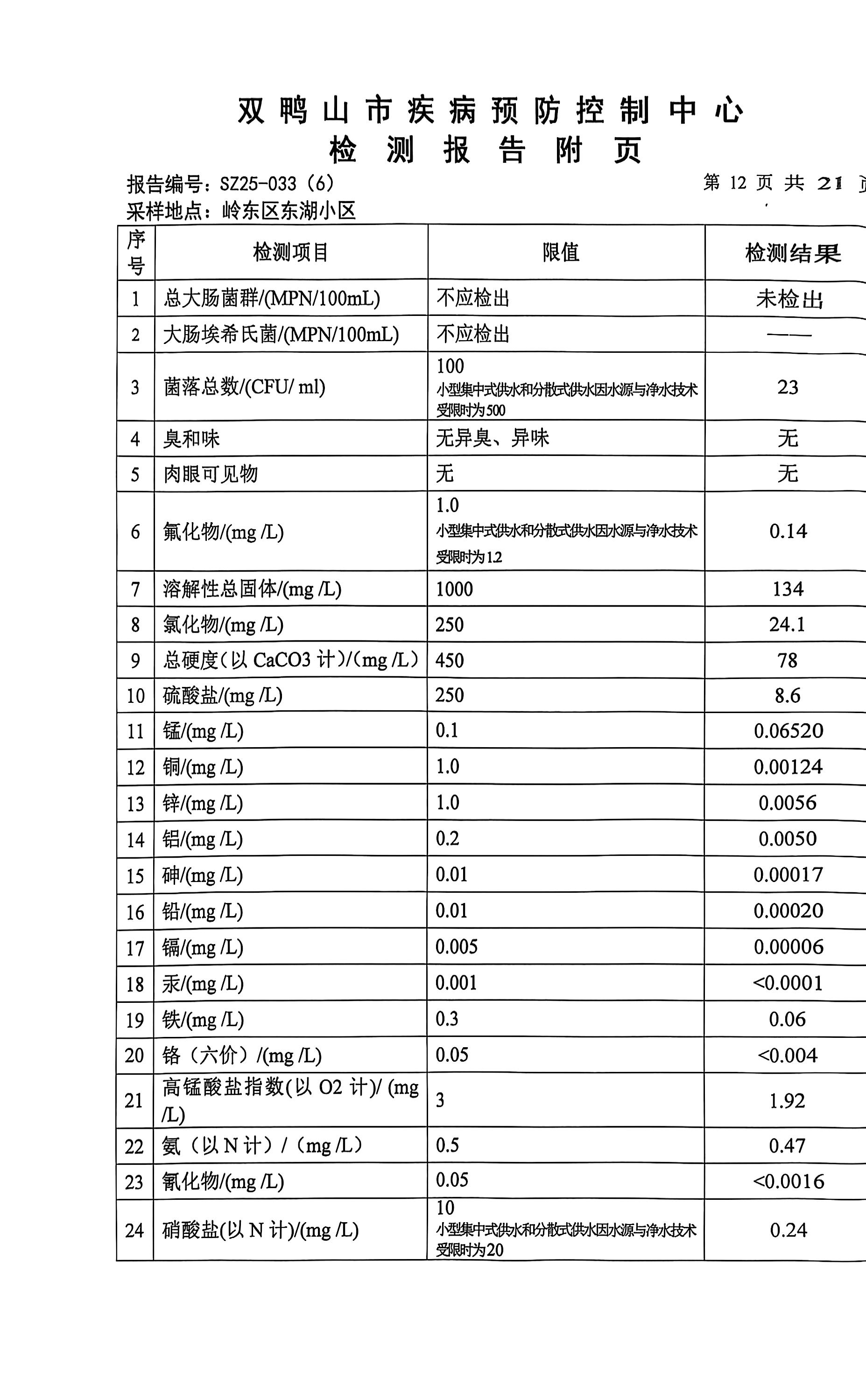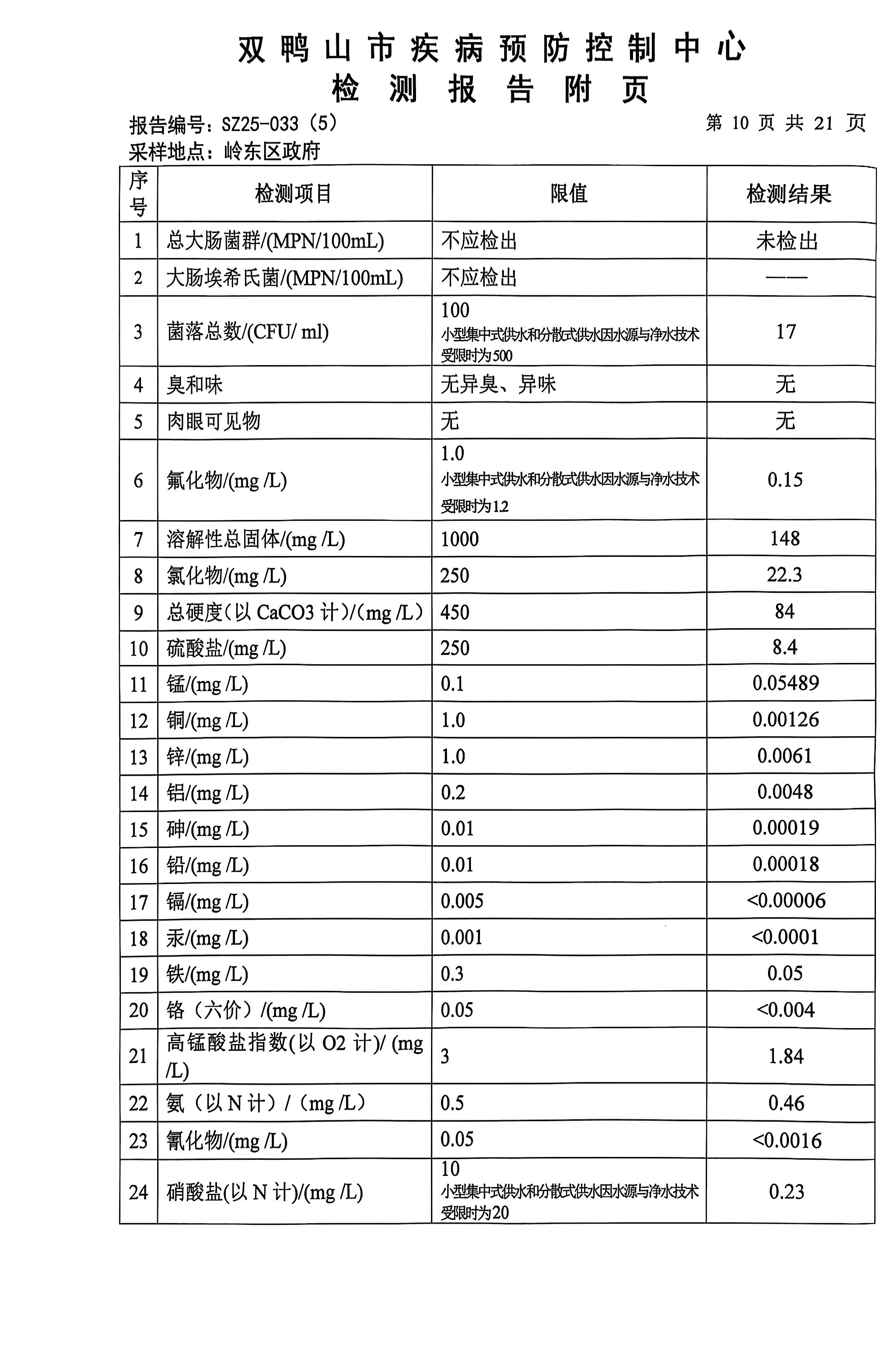 岭东区2025年第三季度生活饮用水公示