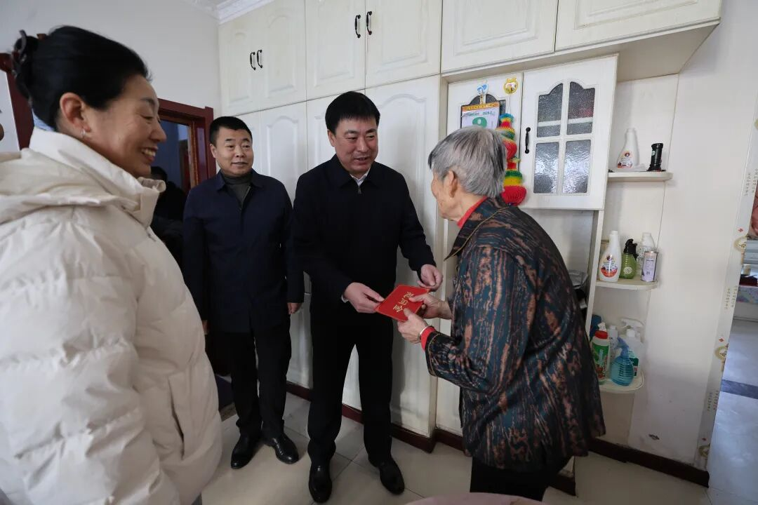 2月9日春节将至,区委书记王崇峰带领相关部门负责人走访慰问了辖区老党员、优抚对象、困难群众,为他们带去了慰问品及慰问金和新春的问候与祝福。